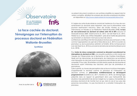 La face cachée du doctorat. Témoignages sur l'interruption du processus doctoral en Fédération Wallonie-Bruxelles