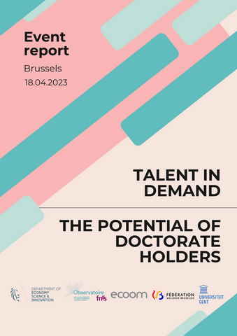 Organized by the Expertise centre for R&D monitoring (ECOOM Ghent) and the Observatory of Research and Scientific Careers-F.R.S.-FNRS, the event "Talent in Demand: The Potential of Doctorate Holders" was held on 18 April 2023 in Brussels, Belgium. Nearly 80 people from Flanders, Brussels and Wallonia joined this event to discuss the potential of doctorate holders in the non academic labour market. The objective of this event was to bring together all relevant stakeholders in Belgium to engage in a fruitful dialogue about the careers of doctorate holders. The audience was a diverse mix of policymakers, researchers (including both doctoral candidates and doctorate holders), university representatives and non academic employers.